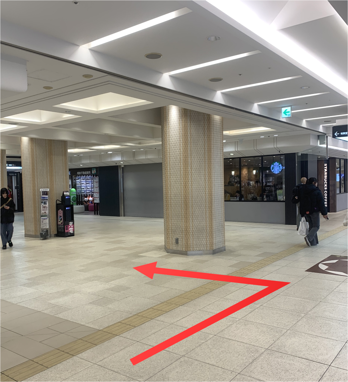 ②「中央南改札」から出たら改札を出て左、「中央北改札」から出たら改札を出て右に進みます。
